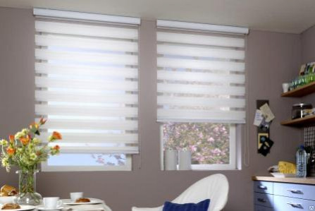 Жалюзі день-ніч представлені в багатьох колірних варіантах, тому ви можете успішно вибрати той, який буде відповідати стилю вашої квартири. Ці ролети складаються з полотна, алюмінієвої касети, в якій захована тканина, та бічних напрямних, що забезпечують прилягання тканини до вікна. Таку саму рулонну штору можна змонтувати на карнизі без касети.